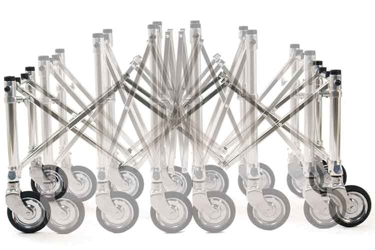 Designed for those who prefer a compact truck. The Church Truck is constructed of rectangular aluminum tubing with a protective anodized finish to keep the truck looking bright and shiny new as well as making it easy to clean. This truck features wheels and three locking frame positions.