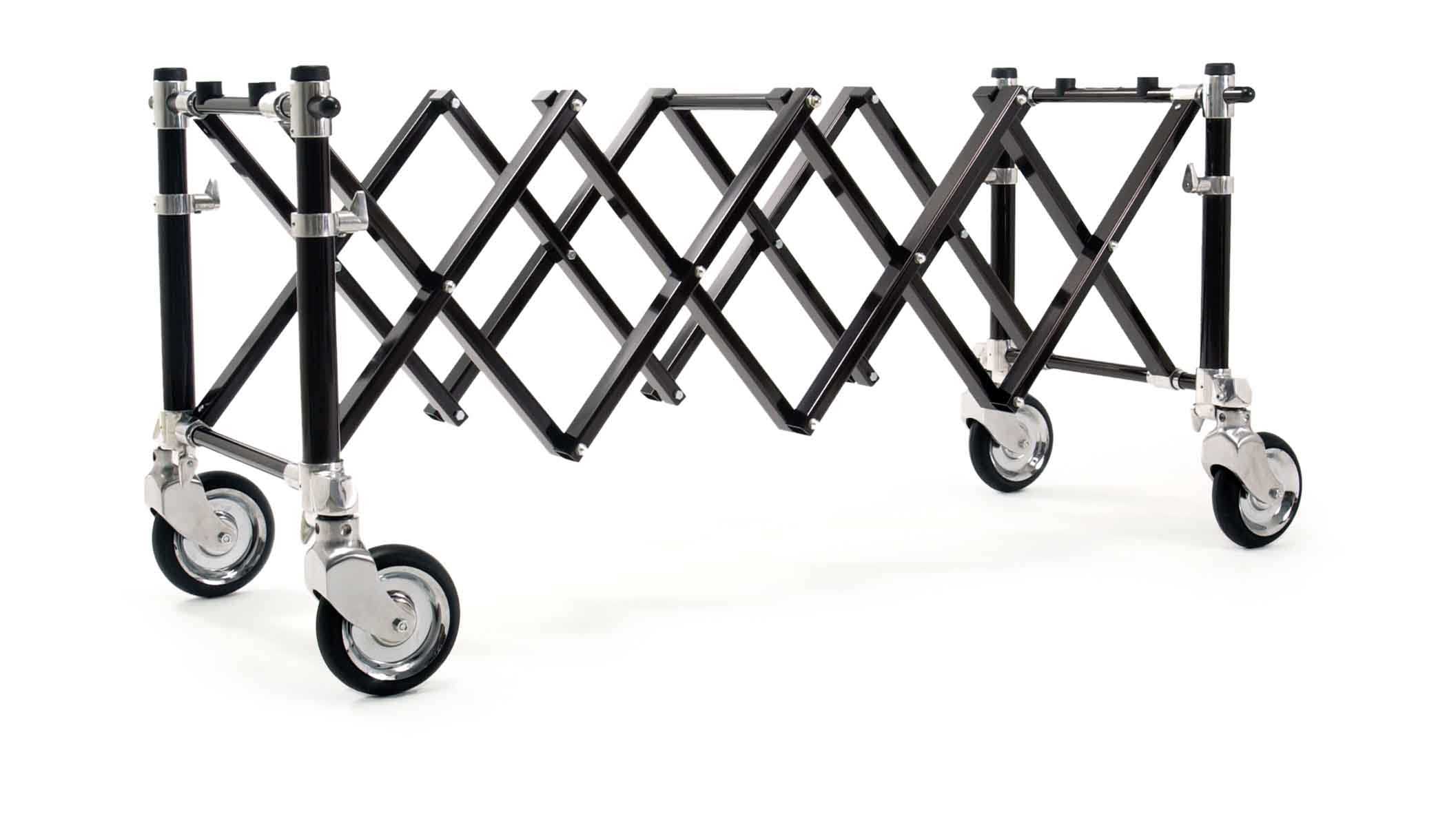 The Model 87 Church Truck locks into four positions, allowing a wide range of casket sizes to be displayed with one truck. The additional length also increases the stability and makes an attractive appearance.