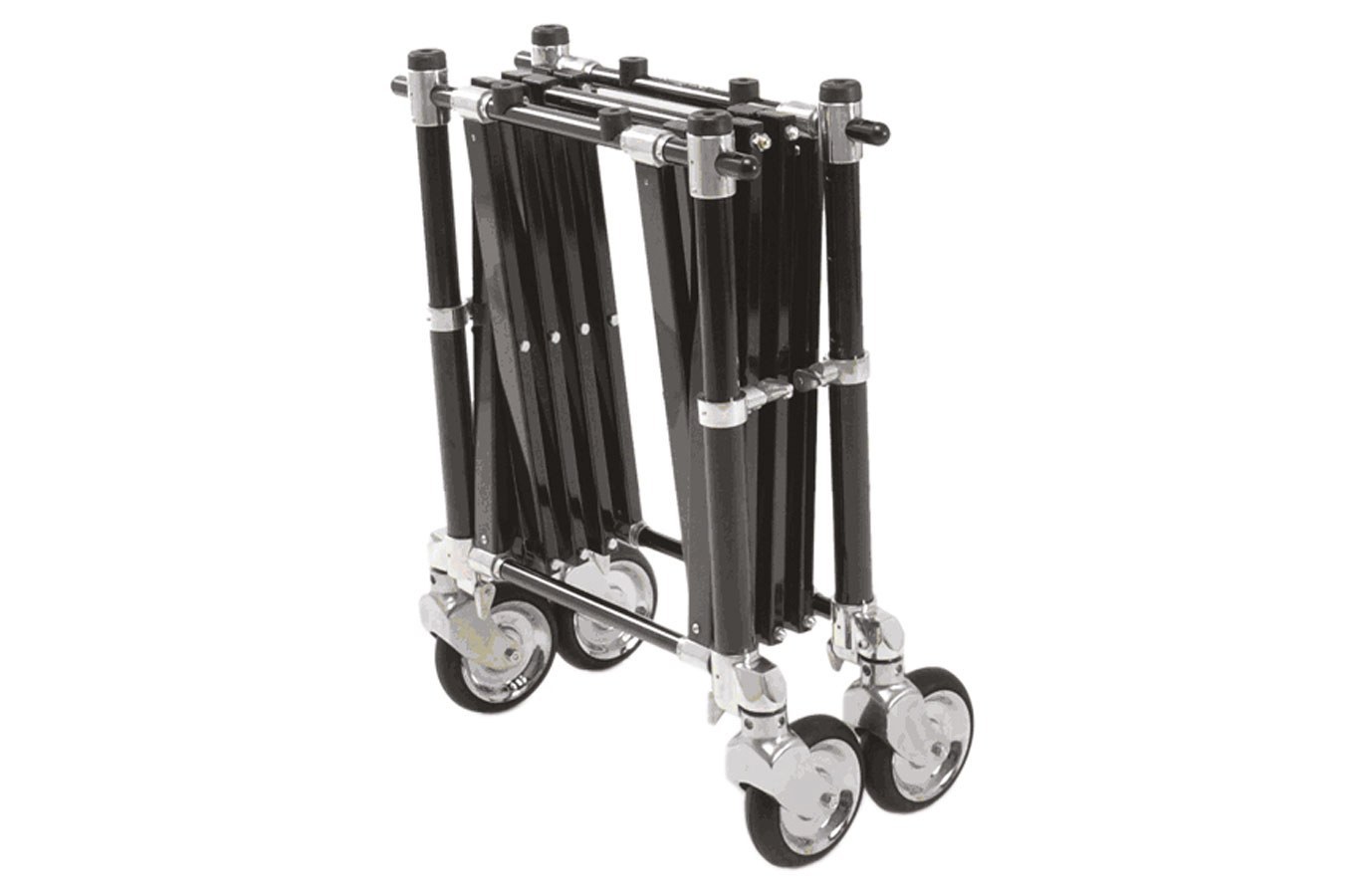 The stable x-frame undercarriage and rubber rests help to secure the casket. Six-inch rubber tire roll easily over carpet, sills ad other obstacles with quiet dignity. When moved without a casket a special built-in handle allows the truck to be pushed, pulled or carried.