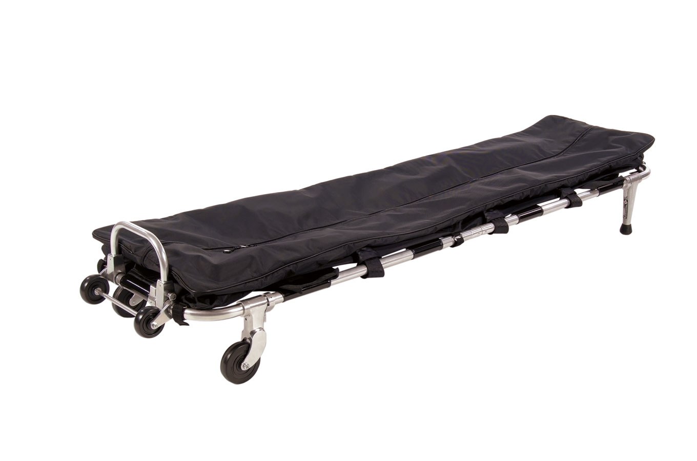 FERNO transfer stretchers are made from high-quality aluminum, making them lightweight yet highly durable. The stretcher comes with two foldable support legs, two foldable wheels, a foot pocket, and a footrest as standard. The gliding rollers at the foot end allow for easy maneuverability, even when the stretcher is raised, such as on stair landings in narrow staircases.